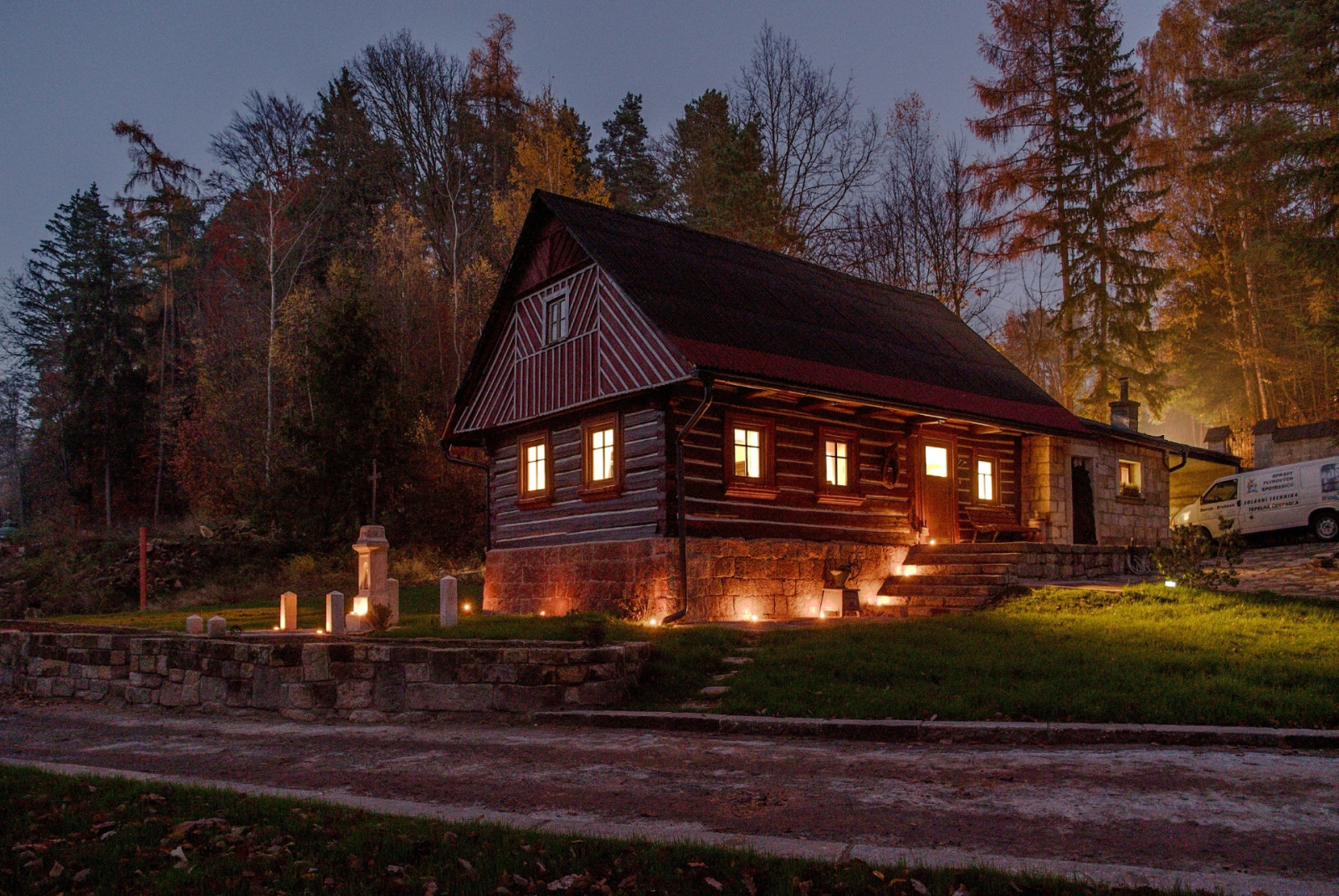 Roubenka Dolní mlýn - opravená chaloupka u mlýna s vodníkem ve Vítězné - Komárově