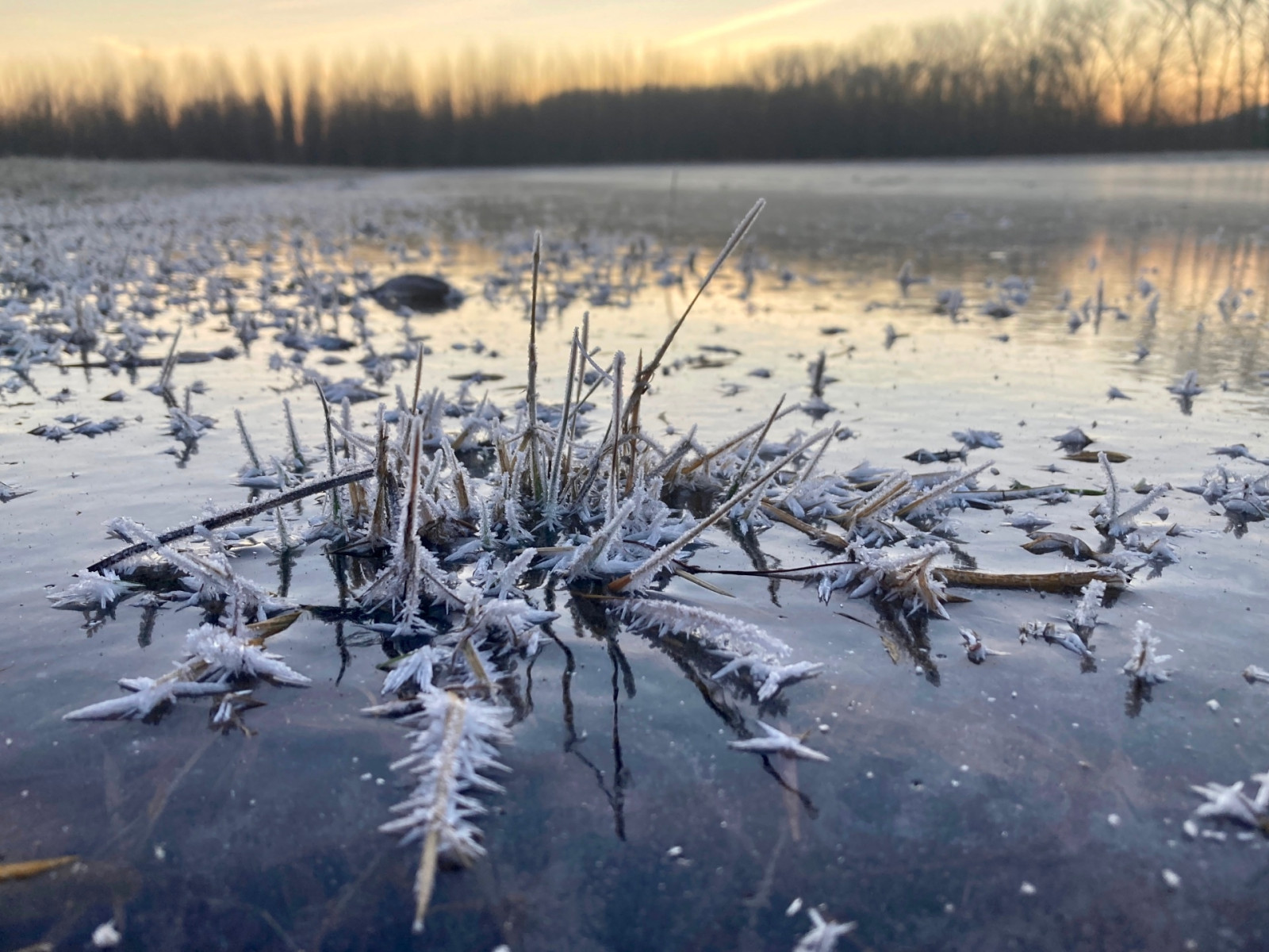 Ledová krásy na mokřadních loukách ve Dvoře Králové