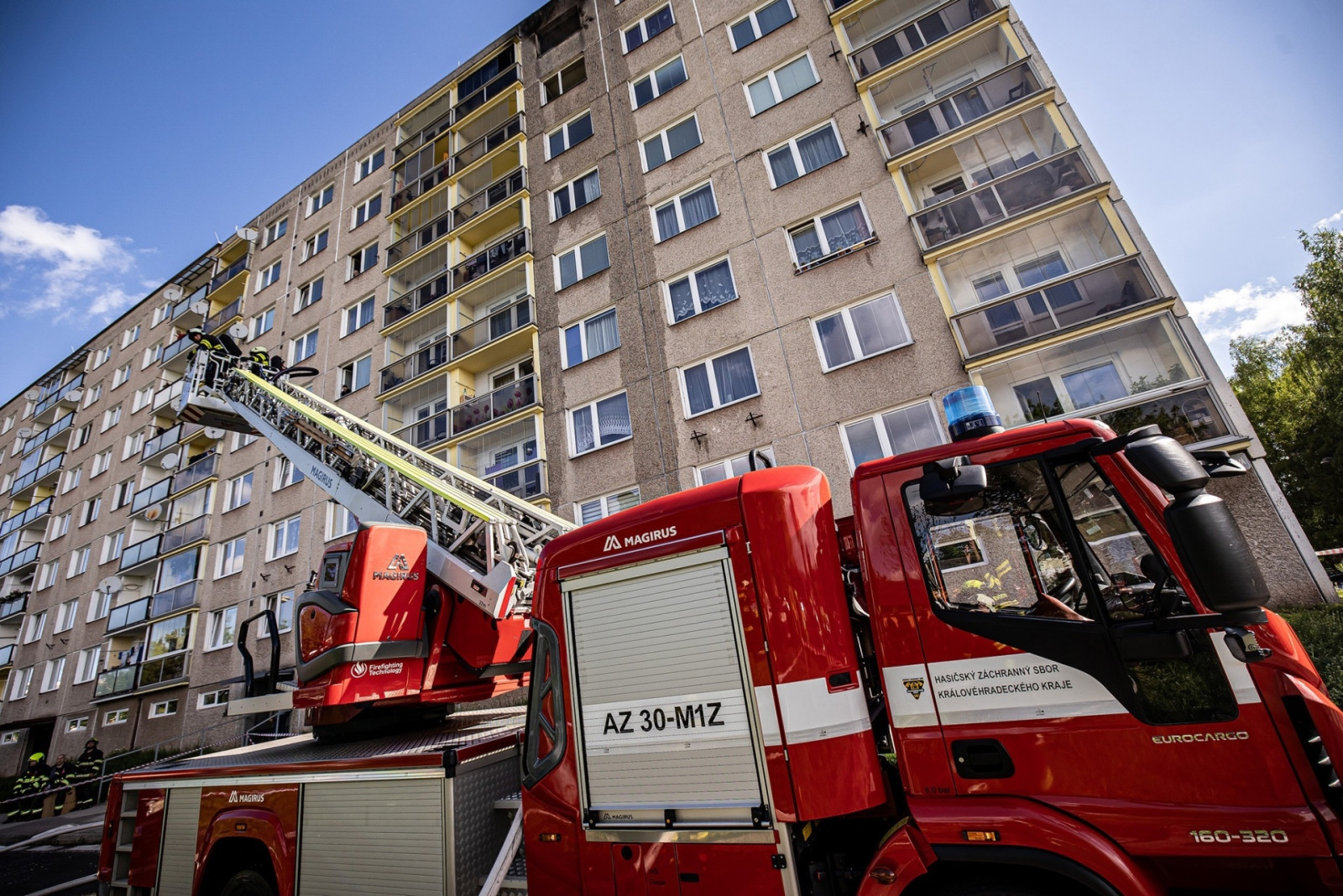 Výbuch bytu a následný požár vyhnal z paneláku v Trutnově 25 osob