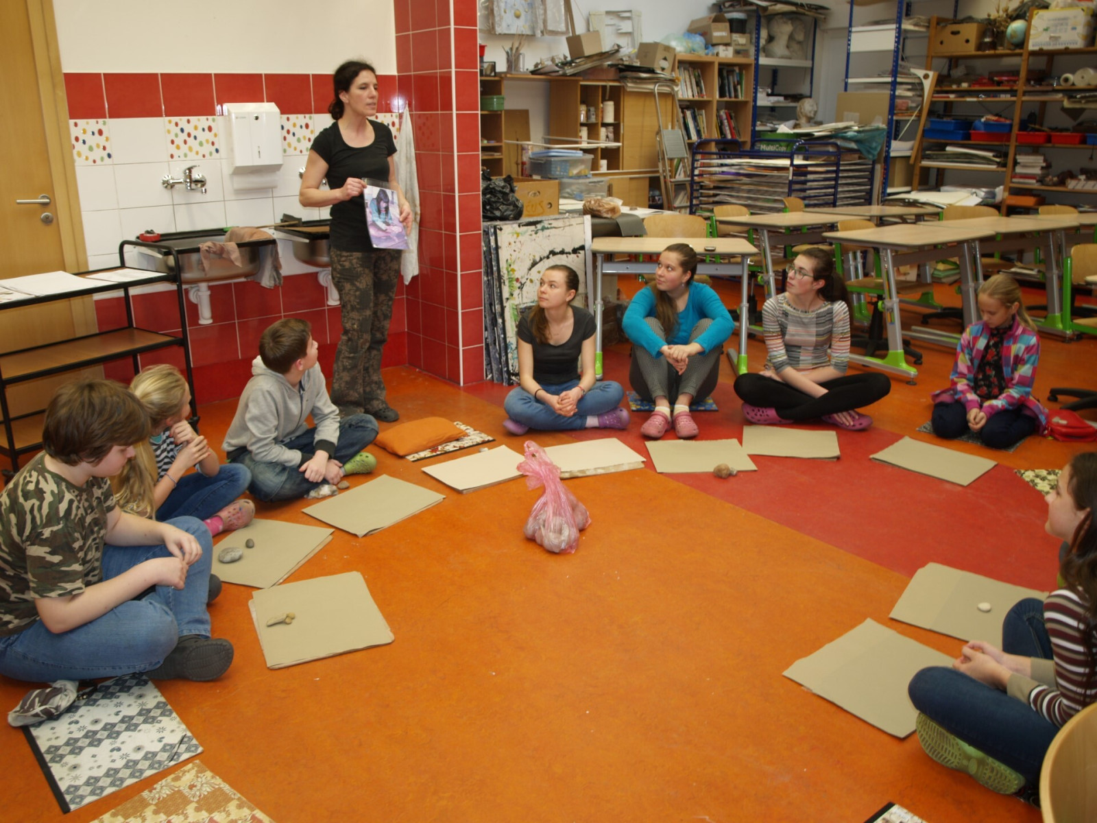 Vyučovací lekce keramičky Lenky Stodůlkové ve výtvarném oboru žáků ZUŠ. Žáci byli seznámeni s vytvářením misky na indiánský způsob.P2180001.JPG