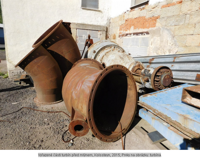 Vyřazené části turbín před mlýnem, Kolssteyn, 2015; Prvky na obrázku,turbína.PNG