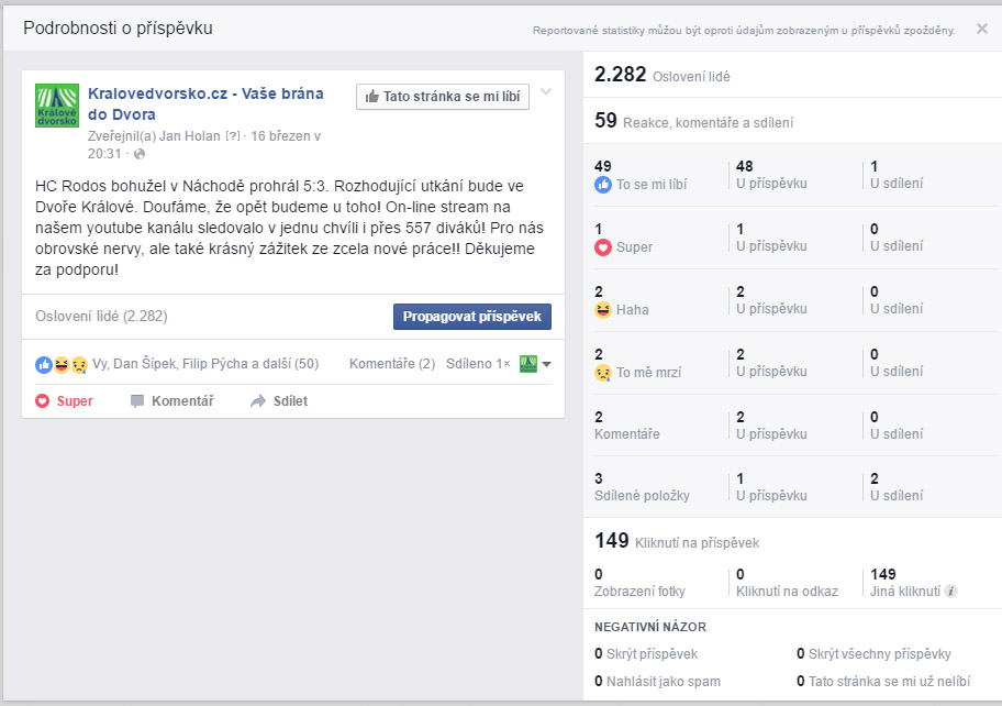 Mediální výstupy živých vysílání zápasů HC Rodos a HC Náchod