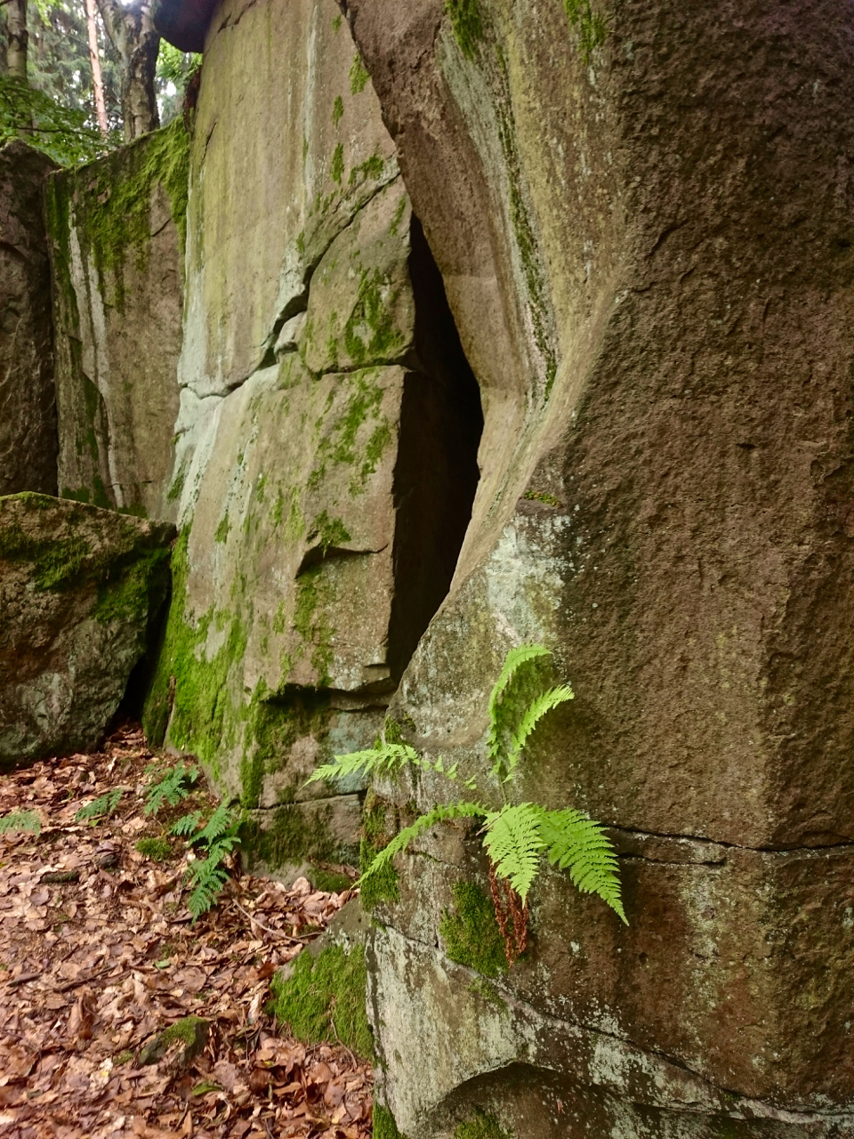 Zvětralé pískovce nedaleko Dvora Králové nad Labem v podobě skalních útvarů nebo jen pohozených balvanů jsou přírodní památkou a také skvělým místem na výlet.certovy hrady leto 20162113.jpg