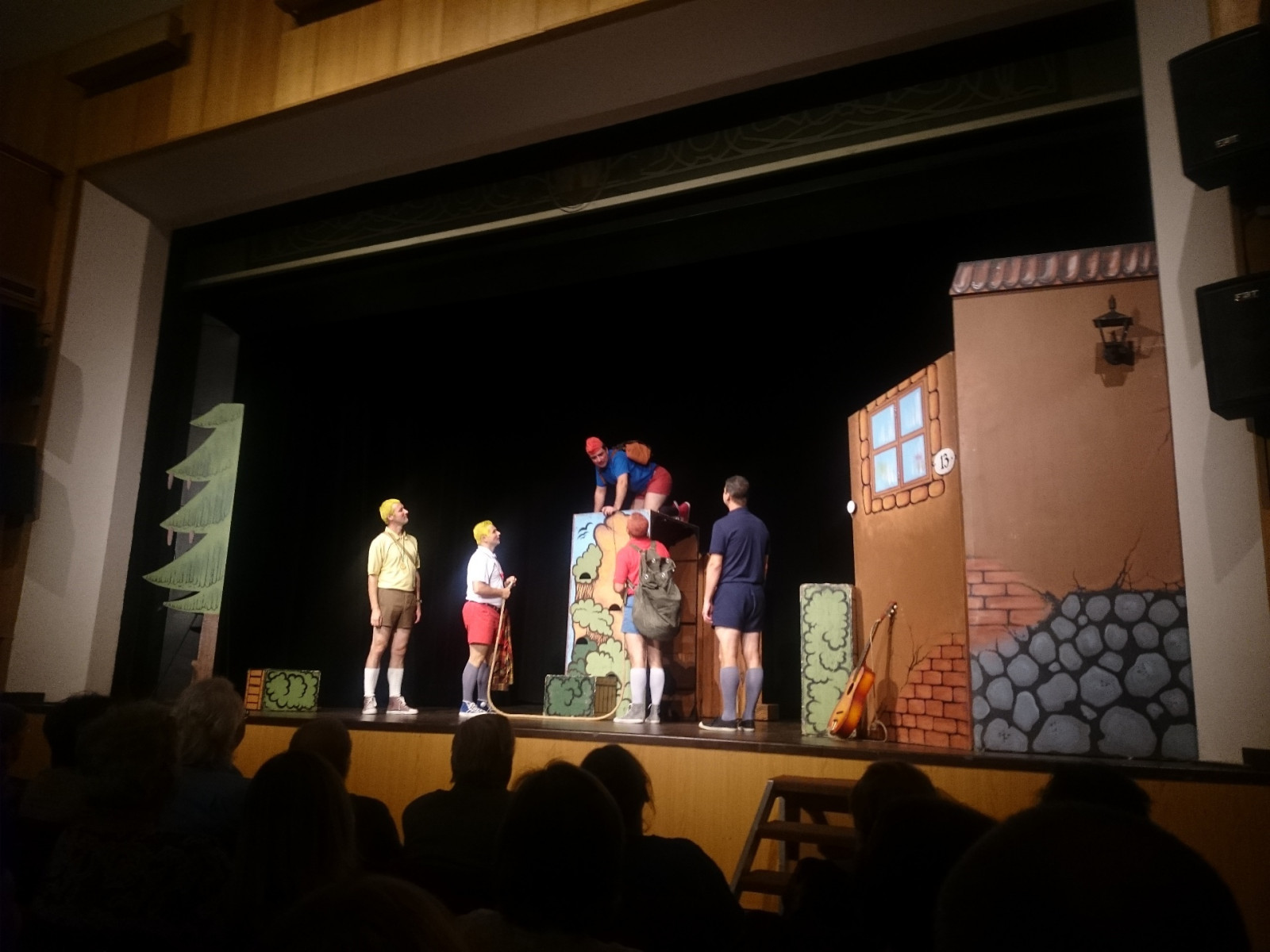 Fotografie z komediálně zpracovaného komiksu v podání Slováckého divadla z Uherského Hradiště.Rychle sipy Slovacke divadlo 4080.JPG