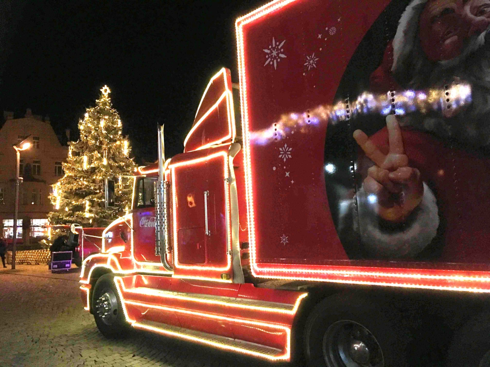 Po třech letech zavítal na náměstí ve Dvoře Králové osvícený červený kamion. Podívejte se na fotogalerii