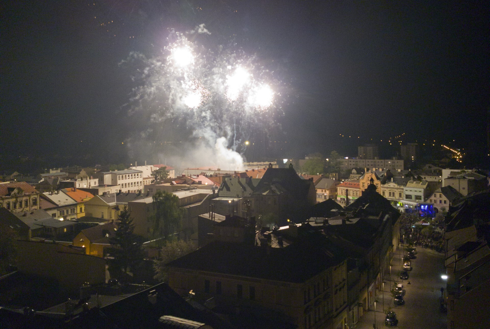 Večer prvního dne tradičních majálesových oslav ve Dvoře Královéohnostroj 33.jpg