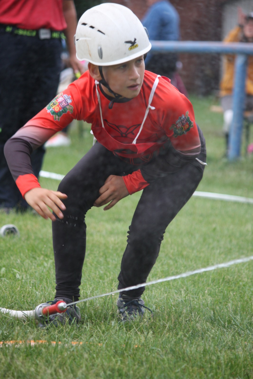 SDH Choustníkovo Hradiště vítězstvím v okresním kole postoupilo na krajské kolo hry Plamen, ze kterého má stříbroMarťas má nastříkáno, odhazuje proudnici a startuje k technickým prostředkům.JPG