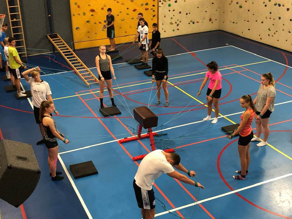 Volejbal DK cvičí spirální stabilizaci páteře