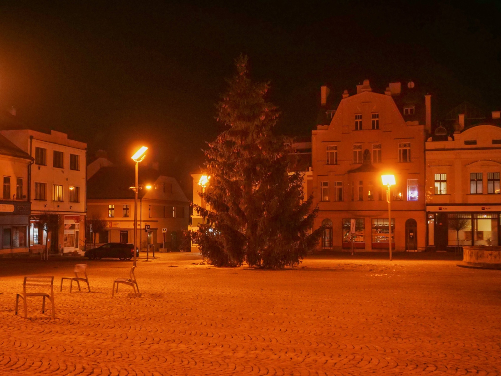 Vánoční stromeček je na Náměstí T. G. Masaryka ve Dvoře Králové nad Labem