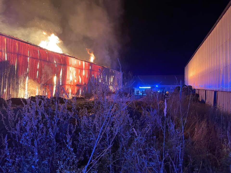 V Dolním Lánově hořela skladovací hala - podívejte se na video a fotografie
